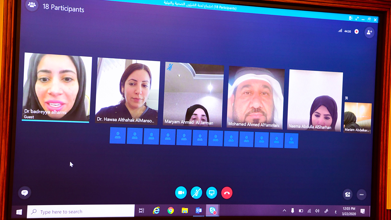وشارك في الاجتماع – الذي سجّل سابقة برلمانية تعد الأولى من نوعها منذ تأسيس المجلس - ممثلو الجهات المعنية والمختصة من البلديات والدوائر والهيئات الصحية، حيث تعد هذه هي السابقة البرلمانية الأولى في تاريخ اجتماعات لجان المجلس، التي يعقد فيها اجتماع عن بعد، ولا يوجد فيه أي من أعضاء اللجنة داخل مقر الأمانة العامة للمجلس، وذلك تماشياً مع الإجراءات الاحترازية والوقائية التي تتخذها الدولة للحد من انتشار الأوبئة والأمراض، والمحافظة على سلامة مختلف فئات المجتمع.