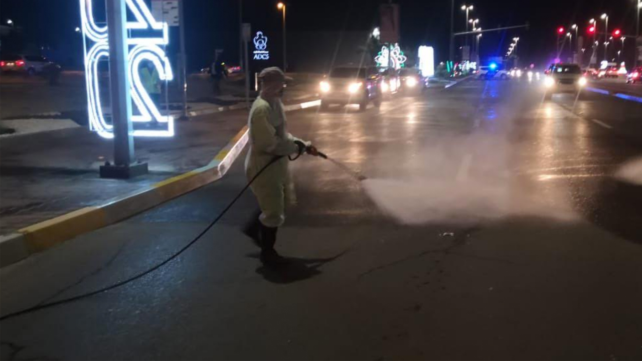 باشرت الفرق المتخصصة عمليات تعقيم الطرق والمرافق العامة في إمارة أبوظبي، وذلك لليوم الثاني من برنامج التعقيم الوطني والذي يتم تنفيذه على ثلاث أيام، وأكد مركز أبوظبي لإدارة النفايات "تدوير"، أن جهوده مستمرة تماشياً مع الإجراءات الاحترازية المتخذة لمواجهة الحالة الطارئة الصحية المستجدة بهدف الحفاظ على النظافة والصحة العامة، مشيراً إلى أن الموارد البشرية والمركبات والمعدات المخصصة لأعمال التعقيم في إمارة أبوظبي تشمل257 مركبة و524 معدة غسيل ورش، بالإضافة إلى 1098 من المهندسين والفنيين والعمال.