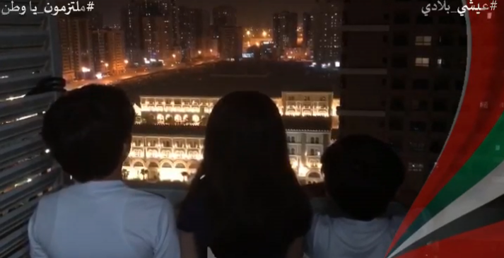 تفاعل مواطنون ومقيمون مع رجال الشرطة والجهات المختصة في الدولة، مع البدء في برنامج التعقيم الوطني الساعة الثامنة مساء، وحتى السادسة صباحا، وذلك بترديد النشيط الوطني الإماراتي من شرفات المنازل برفقة أطفالهم، تضامنا مع جهود الدولة في تعقيم المرافق والمناطق العامة.