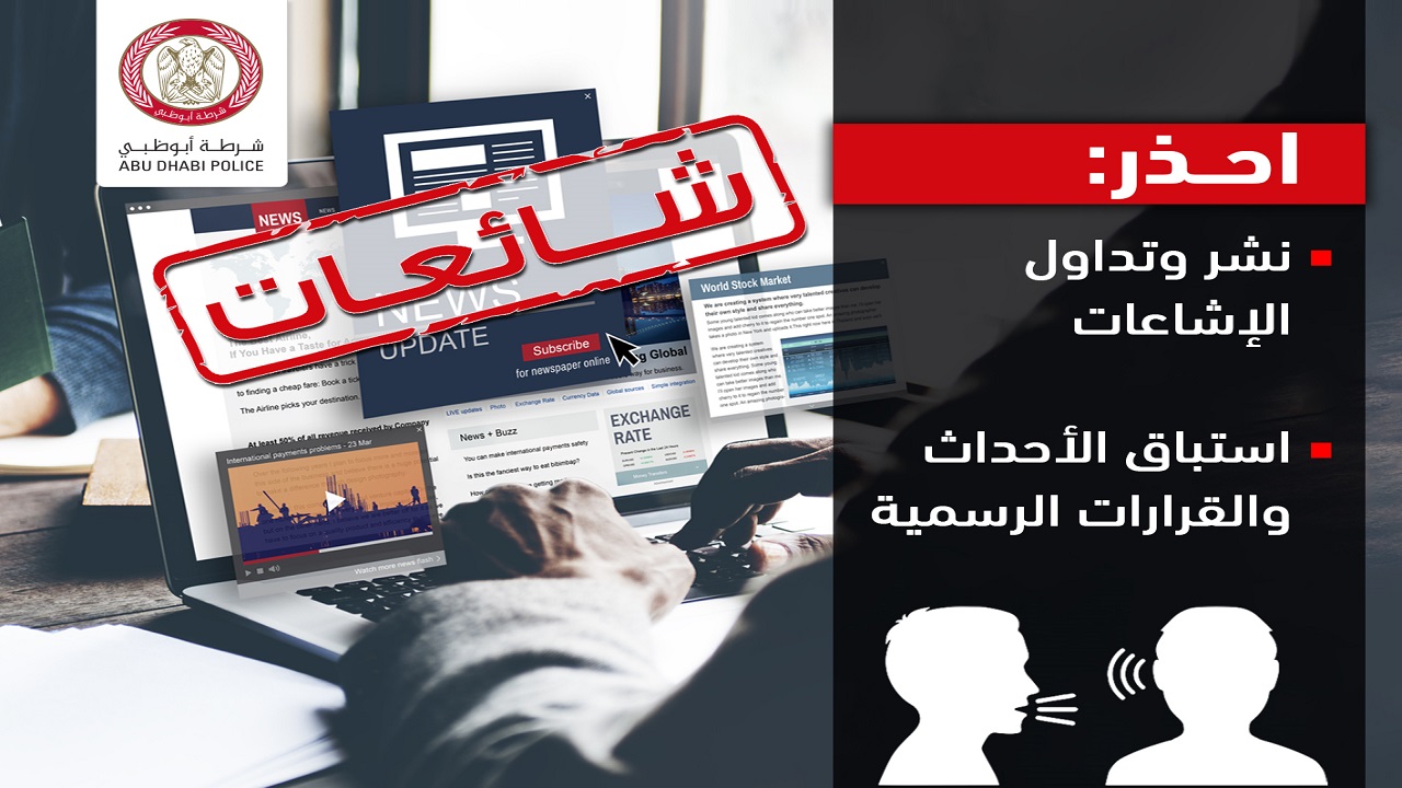 أكدت شرطة أبوظبي على أهمية دور أفراد المجتمع في التصدي للشائعات والمعلومات المغلوطة، داعية الجمهور إلى الحصول على الأخبار من المصادر الإعلامية الموثوقة وذات المصداقية، كما دعت إلى تحري الدقة قبل تداول ونشر الأخبار على مواقع التواصل الاجتماعي، خصوصاً خلال الفترة الراهنة تجنباً للآثار السلبية للشائعات والمعلومات غير الدقيقة على أمن وسلامة المجتمع.