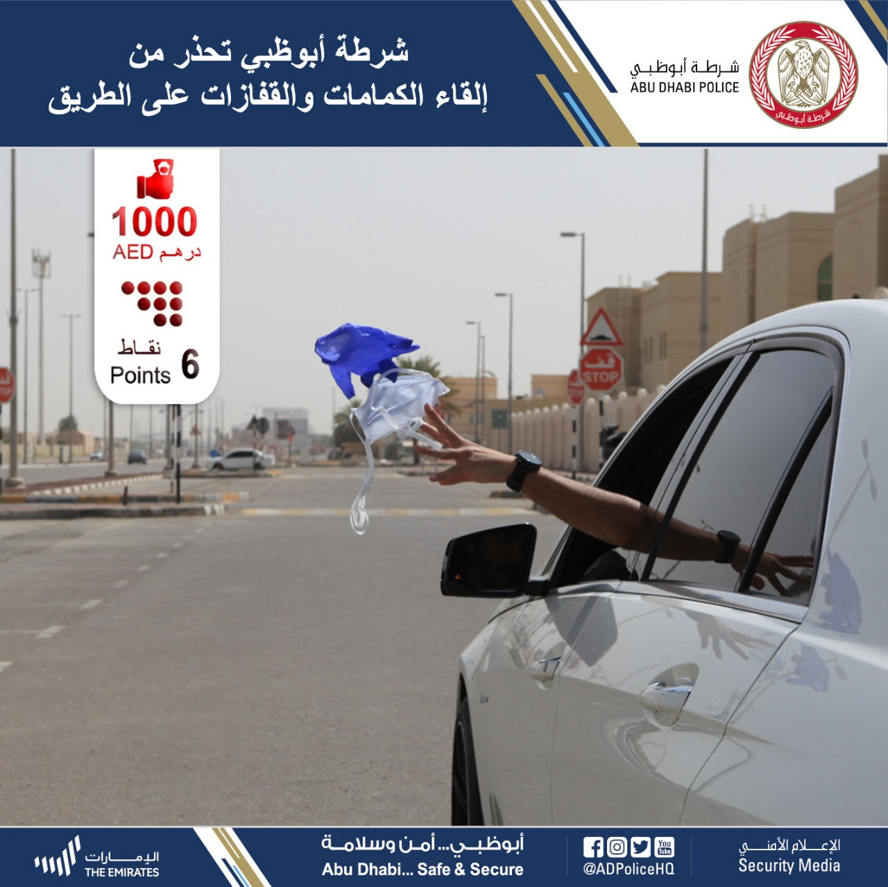 1000 درهم عقوبة إلقاء الكمامات والقفازات على طرق أبوظبي