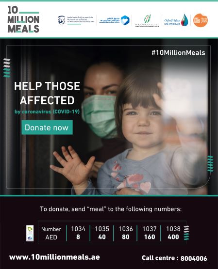 وتوفر «حملة 10 ملايين وجبة» الفرصة للأفراد والمؤسسات من كافة الشرائح المجتمعية والقطاعات في الدولة، بما في ذلك مؤسسات القطاعين الحكومي والخاص ورجال أعمال والمتبرعين والخيرين والحريصين على العمل الإنساني والأفراد القادرين للمساهمة فيها، سواء بالتبرع النقدي لشراء وجبات طعام وطرود غذائية أو من خلال تقديم تبرعات عينية على شكل مساعدات غذائية ومواد تموينية.
