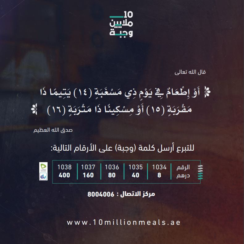 وكان كبير مفتين مدير إدارة الإفتاء في دائرة الشؤون الإسلامية والعمل الخيري في دبي الدكتور أحمد بن عبد العزيز الحداد، أصدر فتوى بجواز إخراج الزكاة نقداً عبر شراء وجبات طعام وتخصيصها للأفراد المحتاجين والأسر المتعففة أو عيناً من خلال التبرع بطرود غذائية وذلك عن طريق «حملة 10 ملايين وجبة»، مؤكداً أهمية توفير الدعم الغذائي للفقراء والمساكين والمتأثرين بتداعيات التفشي العالمي لفيروس كوفيد-19 بقوله: «هؤلاء جيراننا وإخواننا ويعيشون بيننا، فلا بد من إطعامهم، وتوفير الغذاء اللازم لهم وما يحتاجون من مستلزمات حياتهم».