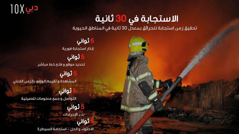 تخطو الإدارة العامة للدفاع المدني في دبي نحو المستقبل بمشروع «الاستجابة في 30 ثانية»، ضمن مشروعات المرحلة الأولى لمبادرة «دبي 10X»، التي اعتمدها سمو الشيخ حمدان بن محمد بن راشد آل مكتوم، ولي عهد دبي رئيس المجلس التنفيذي، وتشرف عليها مؤسسة دبي للمستقبل.