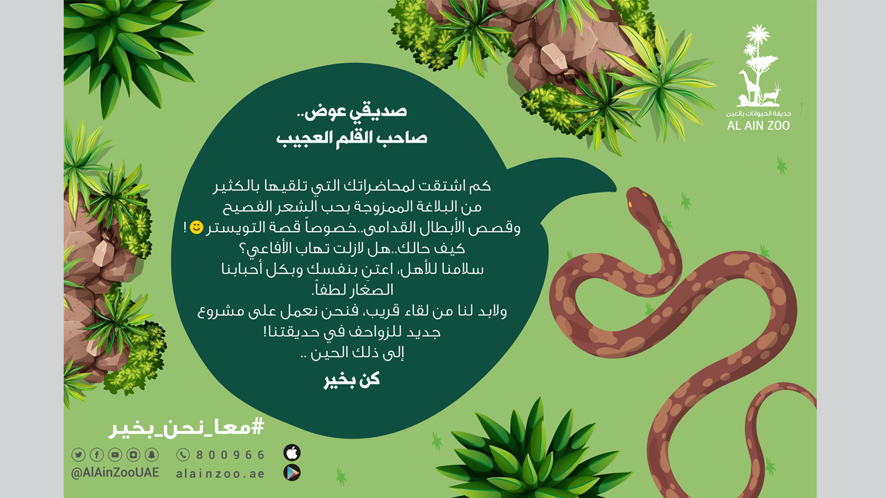 شاهد.. رسائل متبادلة على "تويتر" بين حيوانات "حديقة العين" وشخصيات شهيرة