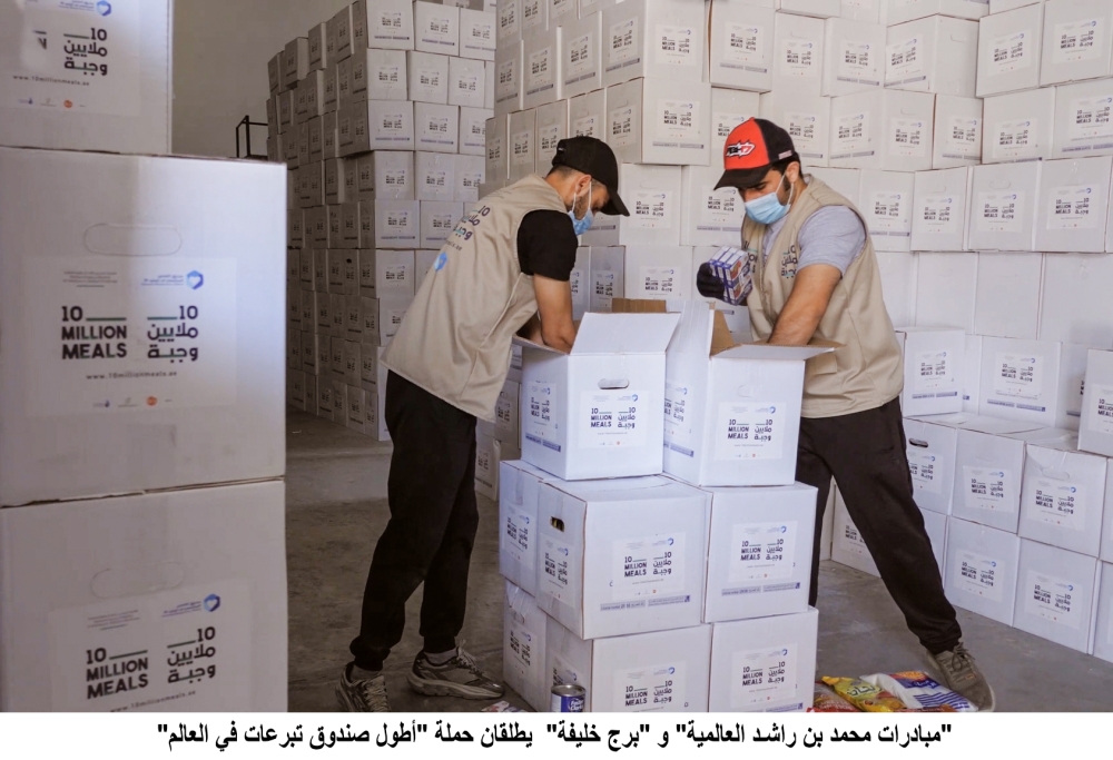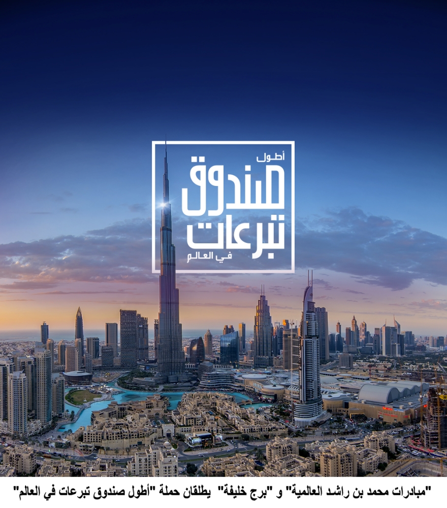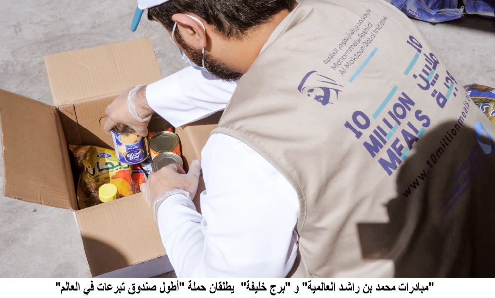أطلقت «مبادرات محمد بن راشد آل مكتوم العالمية» بالشراكة مع «برج خليفة» أطول صرح عمراني صنعه الإنسان على الكوكب مبادرة «أطول صندوق تبرعات في العالم» دعما لحملة «10 ملايين وجبة».