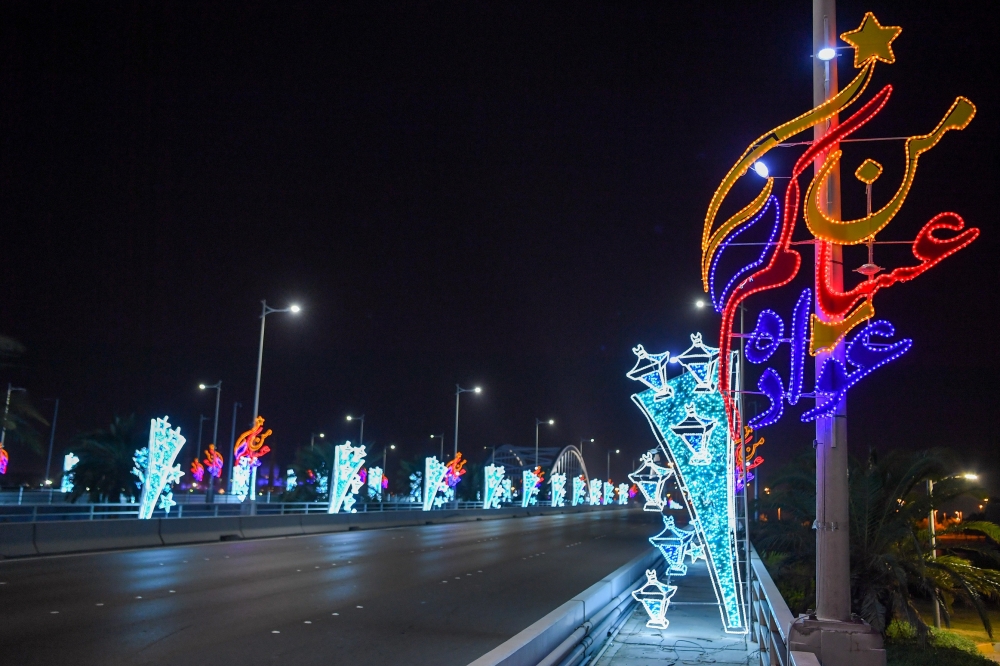 وأوضحت أنه تم إضافة 600 لوحة مضيئة خاصة بعيد الفطر إلى جانب زينة رمضان، شملت زينة الجسور والدوارات الخاصة برمضان، وكذلك تركيب زينة العيد على أعمدة الإنارة الأمامية عند كل تقاطع في الطرق الرئيسة والفرعية.