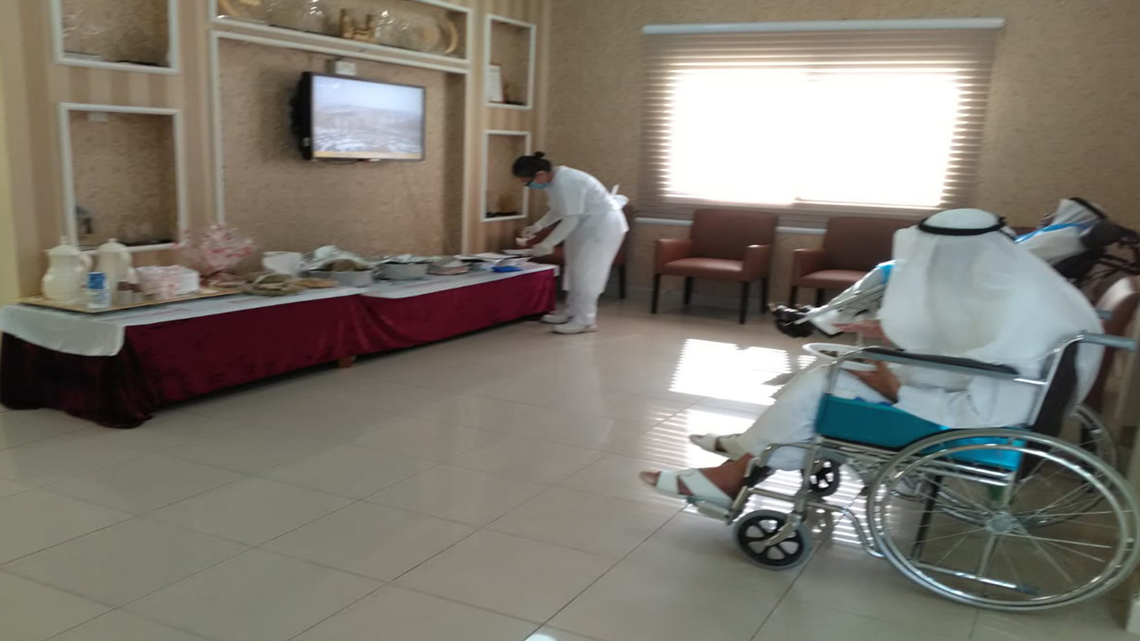 احتفت وزارة تنمية المجتمع بثلاثة مقيمين دائمين في مركز سعادة كبار المواطنين بمناسبة عيد الفطر، وذلك رغم اتباع الإجراءات الوقائية المطبقة للحد من انتشار فيروس كورونا المستجد التي حتمت عدم استقبال المهنئين بالعيد من خارج المركز.