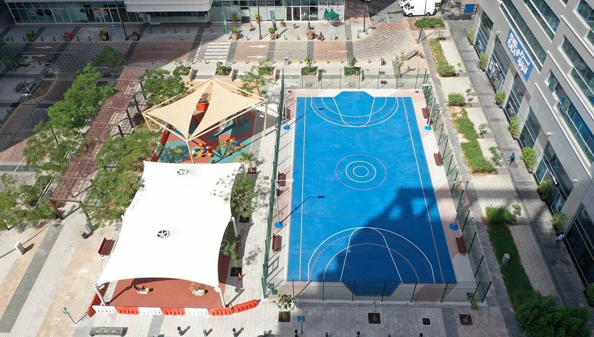 وتضمنت الأعمال إنشاء ملعب متعدد الاستخدامات، يمكّن مرتادي المنطقة من ممارسة رياضات: كرة السلة، والكرة الطائرة، وكرة اليد، وكذلك إنشاء منطقة لممارسة التمارين الرياضية، تم تجهيزها بأرضيات مطاطية ذات مواصفات معينة لتوفير السلامة والمتعة لمستخدميها.
