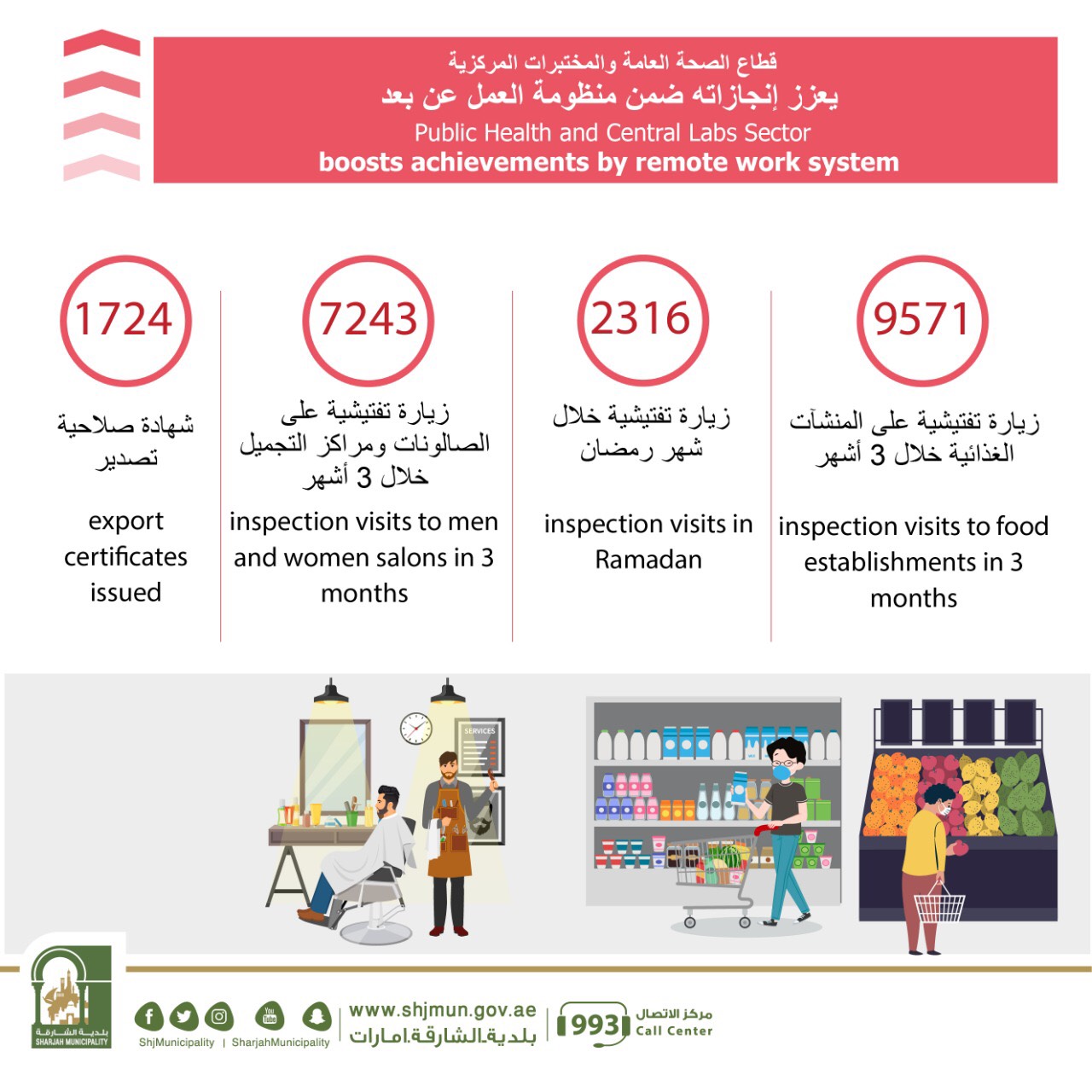أكدت بلدية مدينة الشارقة أن قطاع الصحة العامة والمختبرات المركزية يبذل جهوداً كبيرة في اتباع أفضل الممارسات الصحية وتطبيقها في مدينة الشارقة،واتخاذ إجراءات وتدابير وقائية مشددة وإلزام المؤسسات العاملة في مجال الغذاء من مطاعم وكافتيريات وكذلك صالونات الحلاقة ومراكز التجميلباشتراطات ومعايير صحية وإجراءات وقائية خصوصاً في ظل الظروف الحالية، كما فعّل القطاع منظومة العمل عن بعد وفق أفضل المعايير وقام ببث رسائل توعوية من خلال قنوات التواصل المختلفة للبلدية.