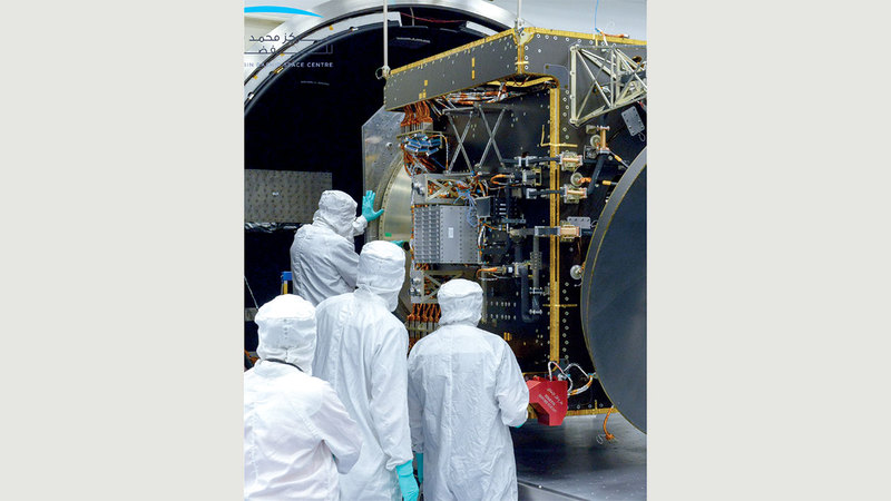 ويقول مسؤول وحدة الدمج والاختبارات بالمشروع من مركز محمد بن راشد للفضاء، المهندس عمر الشحّي: «منذ بداية المشروع بدأ العمل على تصاميم المعدات الأرضية، سواء الكهربائية أو الميكانيكية، بدءاً بتخطيط الاختبارات على القمر الاصطناعي، ومروراً بالبيئات التي يواجهها المسبار في المراحل المختلفة، مثل بيئة الإطلاق من اهتزازات وغيرها، والبيئة الحرارية في الفضاء (العالية والمنخفضة)، وصولاً إلى تجميع وتركيب المسبار بالتنسيق مع الفرق المختلفة».