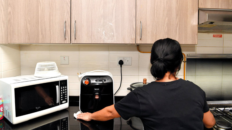 وقالت: «لديّ ستة أبناء، وأحتاج إلى من يساعدني في العمل المنزلي، خصوصاً بعد قرار عودة الموظفين إلى مقرات العمل».