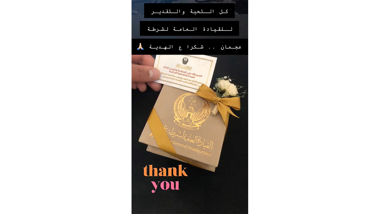 بالصور.. شرطة عجمان توزّع الهدايا على المصابين والمتعافين من فيروس كورونا