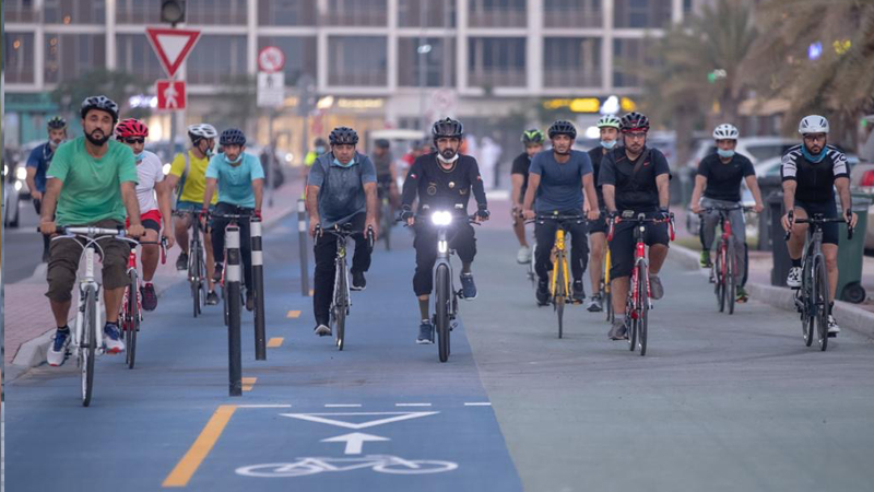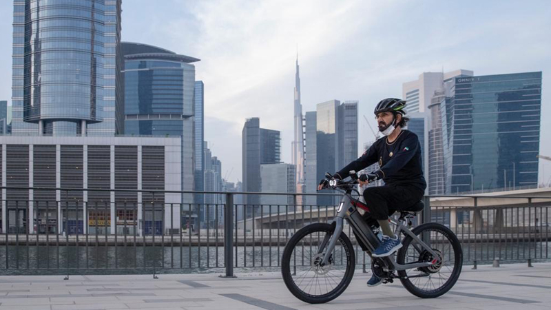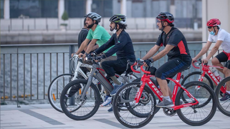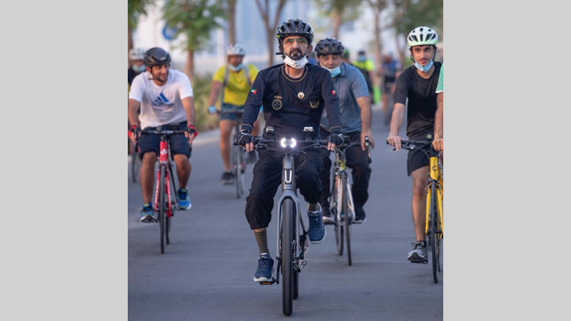 محمد بن راشد يتجول بدراجة هوائية في دبي