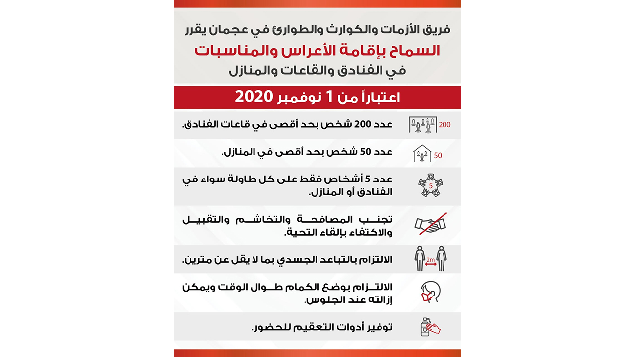 فريق إدارة الطوارئ والأزمات والكوارث بعجمان يسمح باستئناف إقامة الأعراس والمناسبات