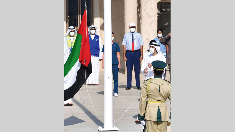 جاء ذلك خلال مشاركة سموه في احتفالات دولة الإمارات بيوم العَلَم، حيث رفع عَلَم الدولة ضمن فعالية تم تنظيمها، أمس، بهذه المناسبة في منطقة الشندغة.