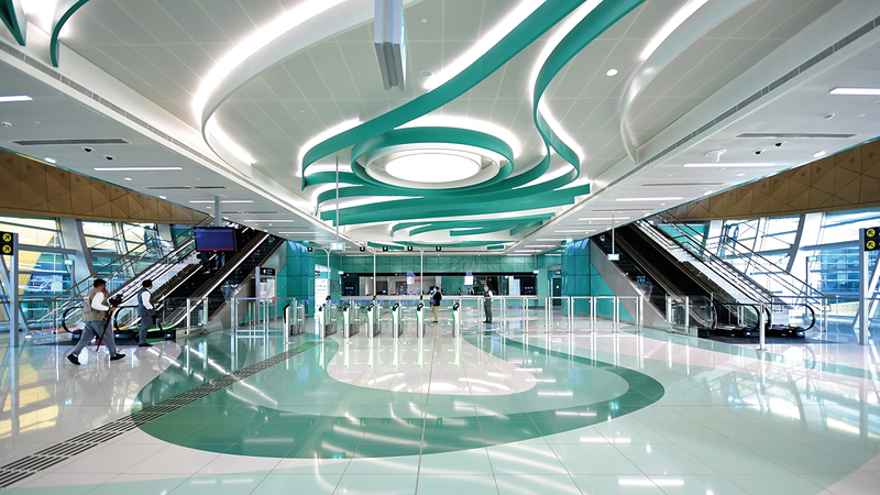 وأضاف أنه تم اختيار الألوان المستوحاة من النار لمحطة عقارات جميرا للغولف، وهي أكبر محطة مترو في شبكة مترو دبي في كل الخطوط، حيث تبلغ مساحتها 28 ألفاً و700 متر مربع.