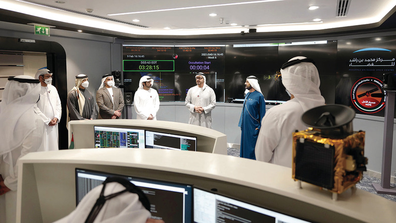 رئيس الدولة: - «أبناء الإمارات حوّلوا الحلم إلى واقع، وحققوا طموحات أجيال من العرب». - «محمد بن راشد تابع المشروع لحظة بلحظة، ومحمد بن زايد سخّر لـ(المسبار) كل الدعم». |