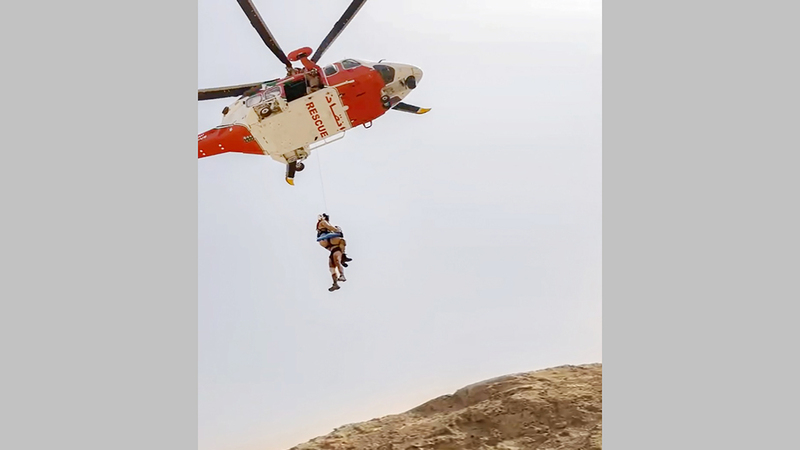 مروحية المركز الوطني تمكنت من إنقاذ السائح. من المصدر
