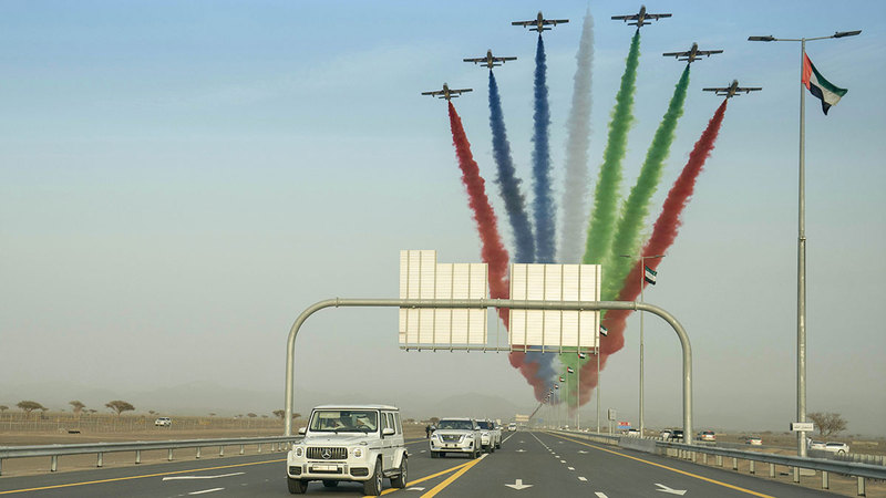 جاء ذلك بمناسبة افتتاح سموه مشروعات شبكة الطرق الاستراتيجية التي تم الانتهاء من تنفيذها أخيراً بتوجيهات صاحب السمو الشيخ خليفة بن زايد آل نهيان، رئيس الدولة، وبمتابعة صاحب السمو الشيخ محمد بن زايد آل نهيان، ولي عهد أبوظبي نائب القائد الأعلى للقوات المسلحة، وباستثمارات قدرها 1.95 مليار درهم، بهدف تعزيز شبكة الطرق بين إمارات الدولة، واختصار المسافة بين مختلف مناطقها، وتقليص الوقت المستغرق في التنقل فيما بينها، في إطار المشروعات التنموية الحيوية التي تتولى إنجازها لجنة متابعة تنفيذ مبادرات صاحب السمو رئيس الدولة، لتلبية احتياجات المواطنين، وتوفير أعلى مستويات الراحة لهم.