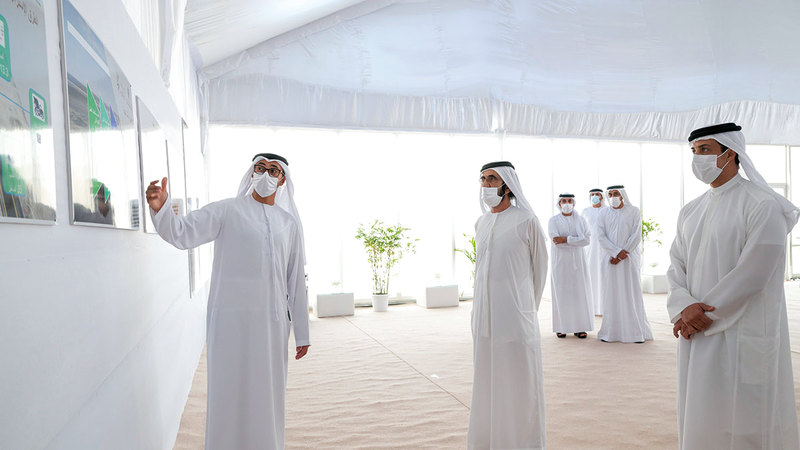 واستمع صاحب السمو الشيخ محمد بن راشد آل مكتوم، وإلى جانبه سمو الشيخ منصور بن زايد آل نهيان، إلى شرح من مدير إدارة المشروعات الهندسية في وزارة شؤون الرئاسة المهندس علي المزروعي، حول مشروعات الطرق الحيوية التي جرى تنفيذها بمتابعة سمو الشيخ منصور بن زايد آل نهيان، وأشرفت وزارة شؤون الرئاسة على تنفيذها، بالتعاون والتنسيق مع وزارة الطاقة والبنية التحتية، وشركة الاتحاد للماء والكهرباء، وتضم شبكة مسارات وطرق وتقاطعات وجسور في ثلاثة محاور رئيسة، تشمل: طريق الشيخ خليفة بن زايد، وطريق الوطن، وطريق حتا دبي، وبأطوال إجمالية تصل إلى 112 كيلومتراً.