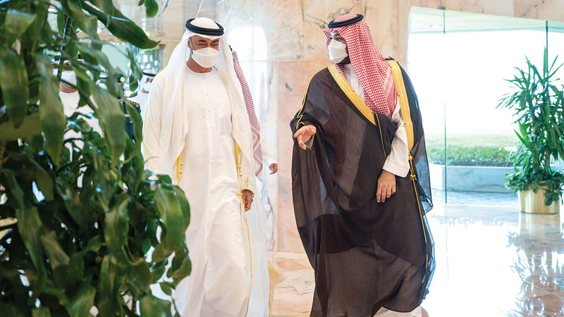 جاء ذلك خلال استقبال صاحب السمو الملكي ولي عهد السعودية، صاحب السمو الشيخ محمد بن زايد آل نهيان، والوفد المرافق، أمس، في العاصمة السعودية الرياض.