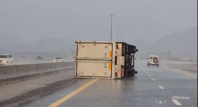 شهدت بعض المناطق الشرقية والوسطى بالدولة عصر اليوم عاصفة رعدية ماطرة أدت إلى جريان الأودية والشعاب وسقوط الأمطار الغزيرة المصحوبة بالبرد في بعض المناطق.