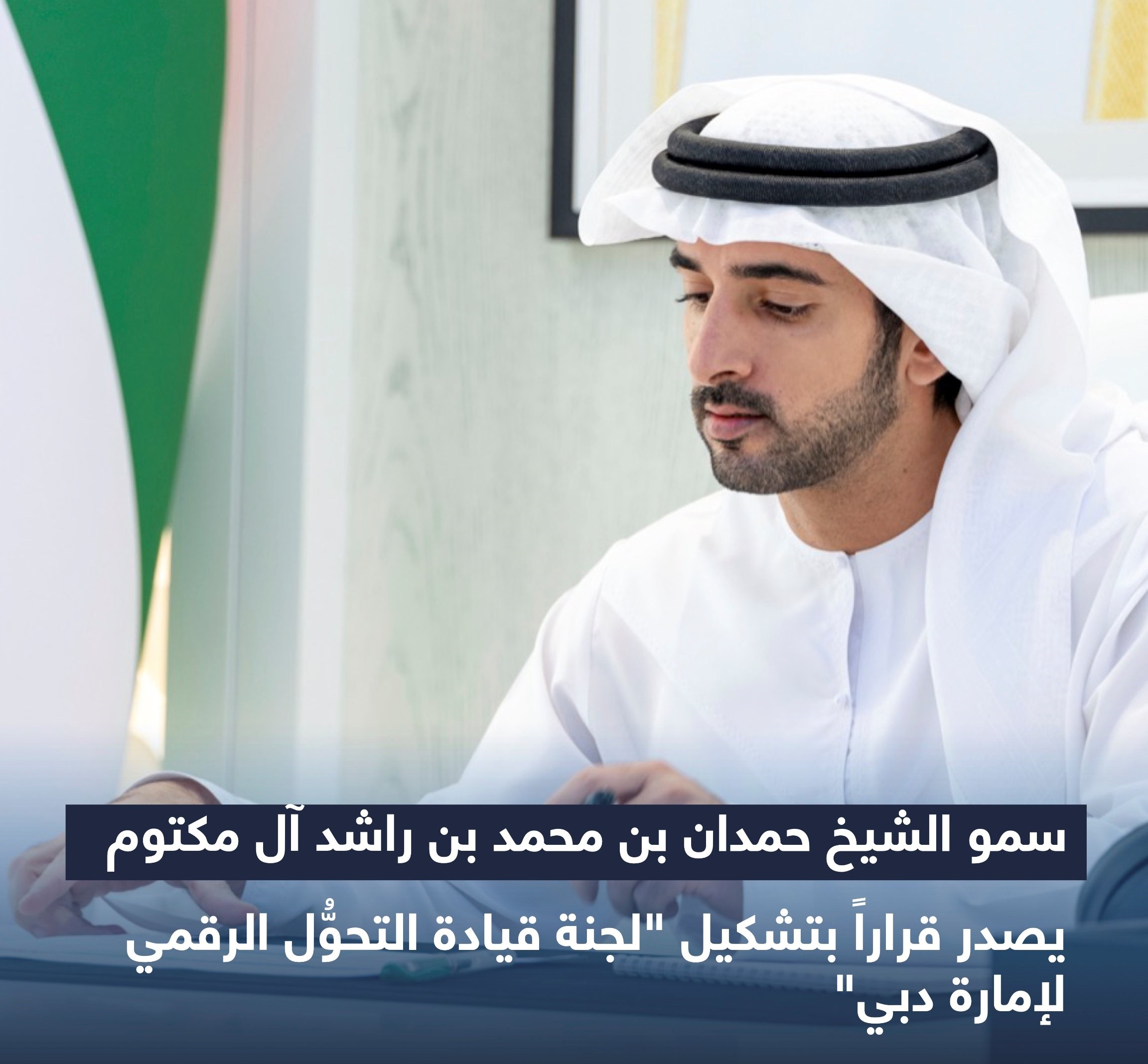 حمدان بن محمد يصدر قراراً بتشكيل "لجنة قيادة التحوُّل الرقمي لإمارة #دبي"، دعماً لتحوُّل الإمارة إلى مجتمع رقمي متكامل. pic.twitter.com/8BcENOUzcV