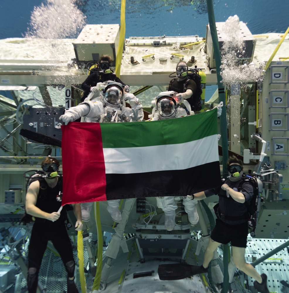 أنهى رائدا الفضاء هزاع المنصوري وسلطان النيادي بنجاح السنة الأولى من تدريباتهما في مركز جونسون للفضاء التابع لوكالة ناسا.