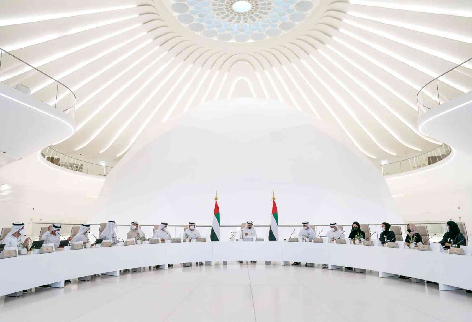 جاء ذلك خلال ترؤس سموه أولى اجتماعات مجلس الوزراء بعد التشكيل الوزاري الأخير لحكومة الإمارات، والذي عقد في معرض إكسبو 2020 دبي، بحضور سمو الشيخ مكتوم بن محمد بن راشد آل مكتوم، نائب حاكم دبي، نائب رئيس مجلس الوزراء وزير المالية، والفريق سمو الشيخ سيف بن زايد آل نهيان، نائب رئيس مجلس الوزراء وزير الداخلية، وسمو الشيخ منصور بن زايد آل نهيان، نائب رئيس مجلس الوزراء وزير شؤون الرئاسة، حيث اعتمد مجلس الوزراء عددا من المبادرات والقرارات الهادفة إلى مواصلة رحلة التنمية وتعزيز المكانة الريادية للدولة إلى جانب عدد من القرارات والقوانين والتشريعات لتطوير العمل الحكومي.