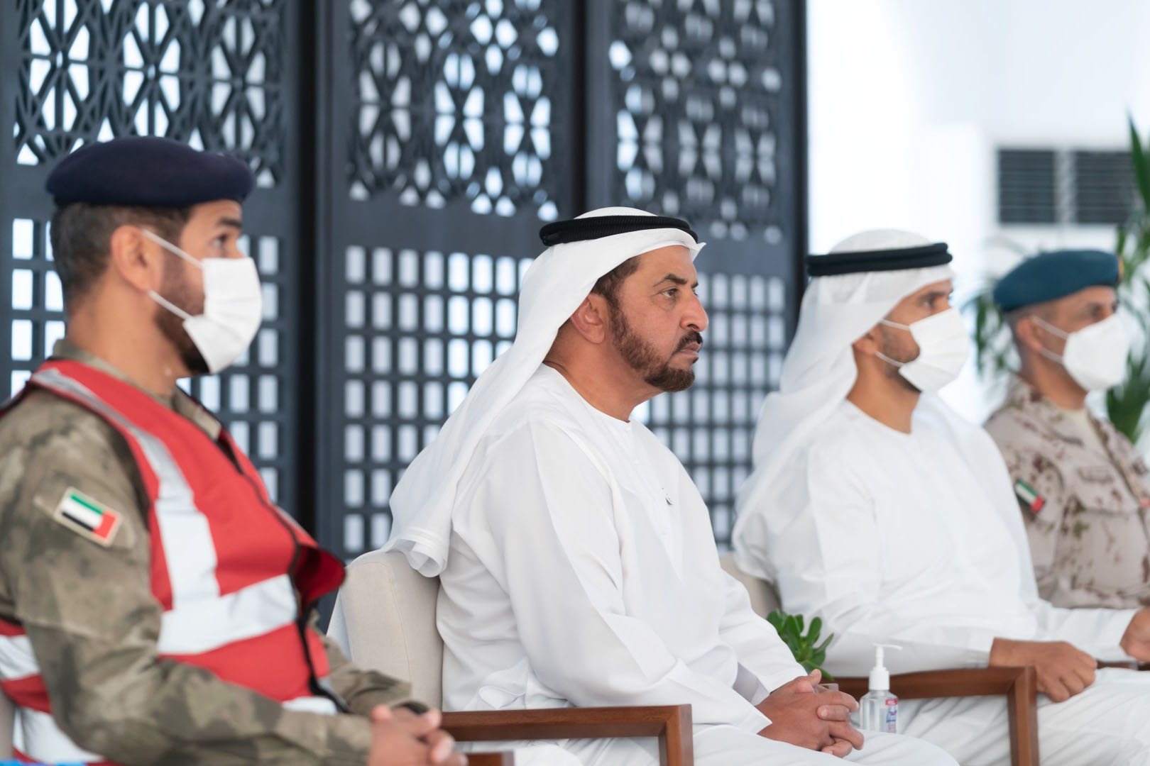 وكان سمو الشيخ حمدان بن زايد آل نهيان قد وصل إلى موقع التمرين حيث كان في استقباله معالي اللواء ركن طيار فارس خلف المزروعي قائد عام شرطة أبوظبي مدير التمرين حيث استمع سموه إلى شرح حول منظومة التطهير وأهداف ومراحل التمرين والخطط الموضوعة التي تم تنفيذها.