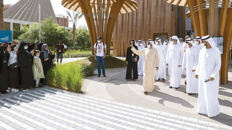 إلى ذلك، زار صاحب السمو الشيخ محمد بن راشد آل مكتوم، جناح جمهورية المجر، المُقام في منطقة «اليوبيل»، والذي تميز تصميمه بهيكل خشبي مزدوج، تم تشييده باستخدام تقنية البناء الجاف، والتي تسهم في تقليل الحاجة إلى الماء بشكل كبير، تأكيداً على أحد المبادئ المهمة التي يروّج لها «إكسبو 2020 دبي»، وهو مبدأ الاستدامة والحفاظ على البيئة.