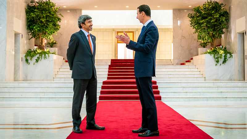 • الأسد أكد على العلاقات الأخوية الوثيقة التي تربط بين البلدين الشقيقين، وأشاد بالمواقف الموضوعية التي تتخذها الإمارات.