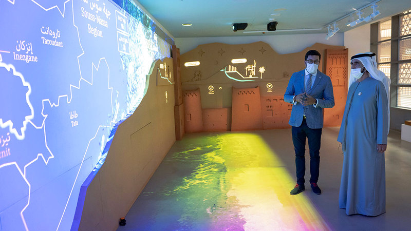 واستهل صاحب السمو الشيخ محمد بن راشد آل مكتوم زيارته للمعرض بتفقّد الجناح المغربي المقام في منطقة الفرص تحت شعار «مملكة الإلهام»، الذي يعرض تجربة المملكة المغربية في مجال الابتكار والتقنيات المتقدمة، كما يسلّط الجناح الضوء على أحدث ما توصلت إليه المملكة في مجالات التنمية المستدامة والبيئة، إضافة إلى العلوم والفنون، حيث تدور فكرة الجناح حول تراث المغرب والانطلاق من الأصول الملهمة إلى التنمية المستدامة، كما يسهم جناح المملكة المغربية في «إكسبو 2020 دبي» في تمكين الزوار من اكتشاف تاريخ وهوية المملكة وإنجازاتها الملموسة ورؤيتها للمستقبل.