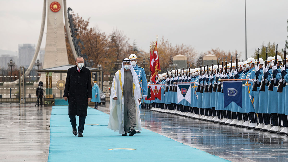 جاء ذلك، خلال استقبال الرئيس التركي، صاحب السمو الشيخ محمد بن زايد آل نهيان والوفد المرافق في قصر الرئاسة في العاصمة التركية أنقرة، حيث رحب الرئيس رجب طيب أردوغان بزيارة صاحب السمو الشيخ محمد بن زايد آل نهيان إلى تركيا ضيفاً كريماً على بلاده، معرباً عن ثقته بأن زيارة سموه تمهد لمرحلة جديدة مزدهرة وواعدة من العلاقات والتعاون الذي يصبّ في مصلحة البلدين وشعبيهما والمنطقة.