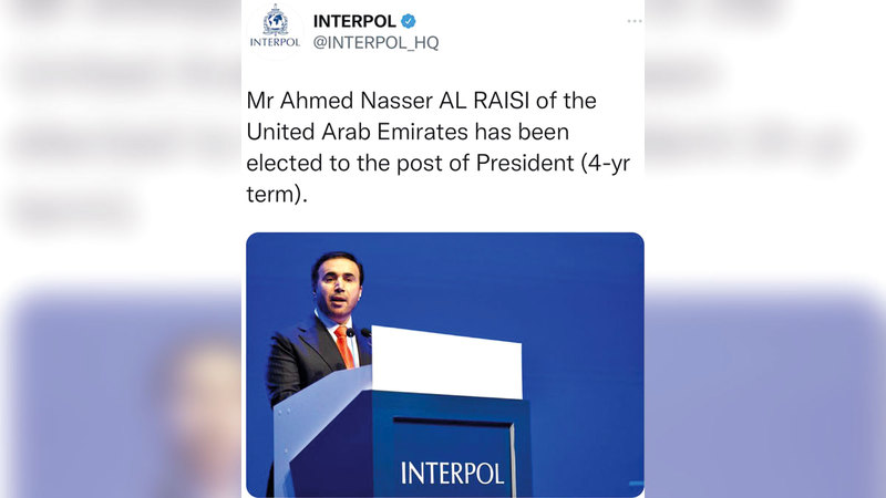 أعلنت المنظمة الدولية للشرطة الجنائية (الإنتربول) عن فوز مرشح دولة الإمارات العربية المتحدة، اللواء الدكتور أحمد ناصر الريسي، بمنصب رئيس «الإنتربول» لمدة أربع سنوات، وذلك خلال اجتماع الجمعية العمومية للمنظمة، الذي عقد أمس في إسطنبول.
