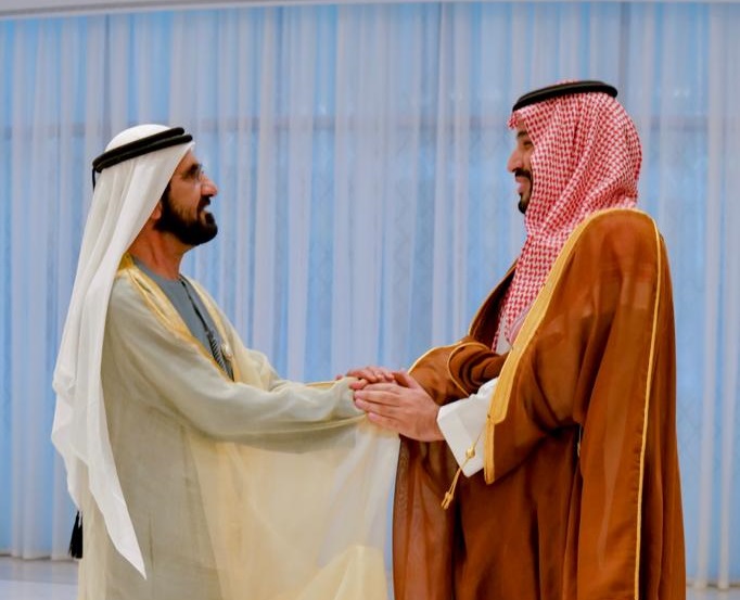 ونقل الحساب الرسمي للمكتب الإعلامي لحكومة دبي على "تويتر" أن سموهما بحثا "خلال اللقاء سبل توطيد العلاقات الثنائية التي تربط البلدين والشعبين الشقيقين في إطار المصير الواحد والرؤى المشتركة".