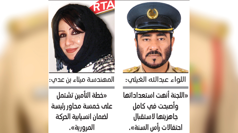 من جهتها أكدت هيئة الطرق والمواصلات ممثلة في المدير التنفيذي لمؤسسة المرور والطرق في الهيئة رئيس فريق إدارة الحركة المرورية وأنظمة النقل خلال الفعاليات، المهندسة ميثاء بن عدي، أنه سيتم إدارة الحركة المرورية وحركة التنقل في ليلة رأس السنة من مركز التحكم الموحد لأنظمة النقل والطرق التابع للهيئة.