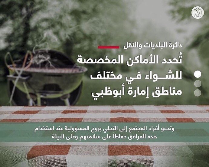 حددت دائرة البلديات والنقل في أبوظبي 23 موقعاً مخصصاً للشواء في مختلف مناطق إمارة أبوظبي، داعية أفراد المجتمع إلى التحلي بروح المسؤولية عند استخدام هذه المرافق
