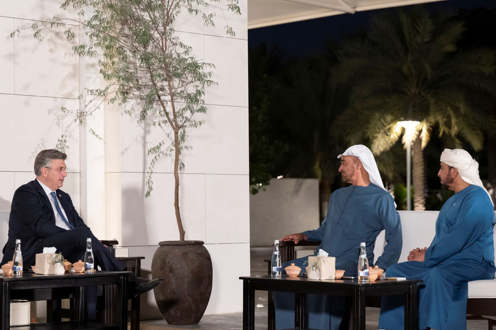 ونقل رئيس وزراء كرواتيا في بداية اللقاء تحيات .. زوران ميلانوفيتش رئيس كرواتيا ، إلى صاحب السمو الشيخ خليفة بن زايد آل نهيان رئيس الدولة "حفظه الله، وصاحب السمو الشيخ محمد بن زايد آل نهيان، وتمنياته لدولة الإمارات و شعبها مزيداً من التقدم والازدهار .. فيما حمل سموه رئيس وزراء كرواتيا.. تحياته إلى الرئيس الكرواتي وتمنياته لبلده وشعبه دوام الأمان والاستقرار.