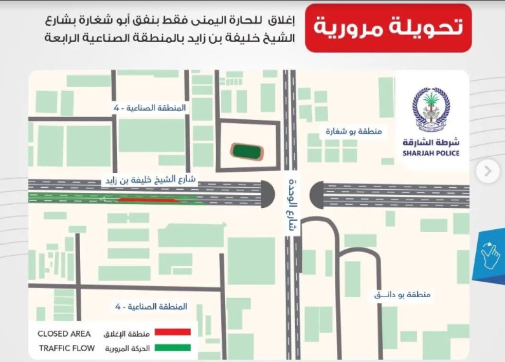 أعلنت هيئة الطرق والمواصلات بالشارقة عن إغلاق للحارة اليمين في نفق أبو شغارة بشارع الشيخ خليفة بن زايد، بالمنطقة الصناعية الرابعة بالاتجاه من شارع الشيخ محمد بن زايد إلى تقاطع الجوازات، وذلك لأعمال صيانة ورفع كفاءة النفق بداية من صباح اليوم الجمعة من الساعة 12 صباحاً وحتى يوم الثلاثاء الموافق 12 أبريل 2022 الساعة 5 صباحاً، استكمالاً لتطوير ورفع كفاءة الطرق في الشارقة.