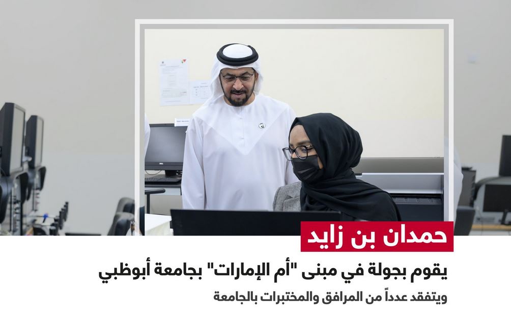 أكد سمو الشيخ حمدان بن زايد آل نهيان ممثل الحاكم في منطقة الظفرة رئيس مجلس أمناء جامعة أبوظبي أن التعليم يتصدر أجندة أولويات صاحب السمو الشيخ محمد بن زايد آل نهيان رئيس الدولة، إذ تمثل رؤية سموه دافعاً قوياً لمؤسسات التعليم للانطلاق إلى آفاق عالمية بما يلبي طموحات القيادة الرشيدة بشأن تميز كوادرنا الوطنية المتسلحة بالعلم والمعرفة في مختلف التخصصات العلمية البارزة التي تجسد خارطة الطريق لمستقبل مشرق خلال الخمسين عاماً المقبلة وفي مقدمتها العلوم الصحية والتكنولوجيا المتقدمة والعلوم الهندسية والذكاء الاصطناعي والأمن الإلكتروني وغيرها من التخصصات التي تعزز من تصدر منظومة التعليم الإماراتية لمؤشرات التنافسية الدولية.