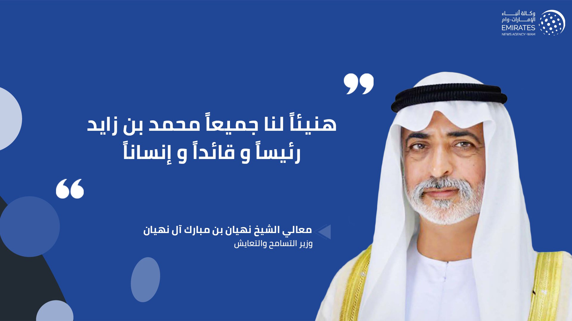 نهيان بن مبارك : هنيئاً لنا جميعاً محمد بن زايد رئيساً وقائداً وإنساناً