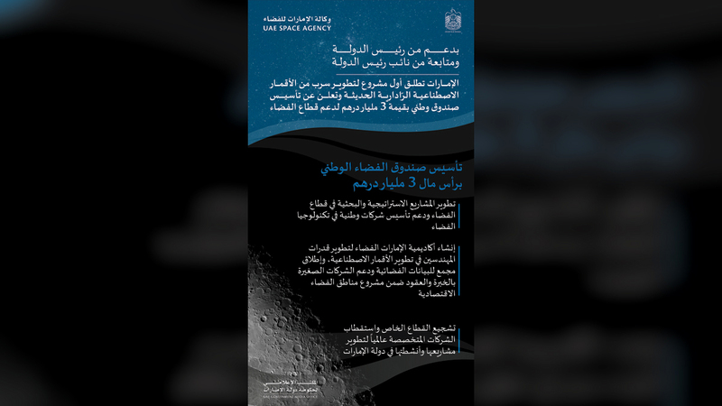 تأسيس صندوق وطني بـ 3 مليارات درهم لدعم قطاع الفضاء.