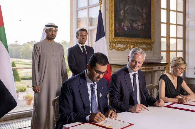 شهد صاحب السمو الشيخ محمد بن زايد آل نهيان رئيس الدولة توقيع اتفاقية لتأسيس شراكة إستراتيجية شاملة في مجال الطاقة بين الإمارات وفرنسا لتعزيز وتسريع العمل في هذا القطاع الحيوي والمهم.