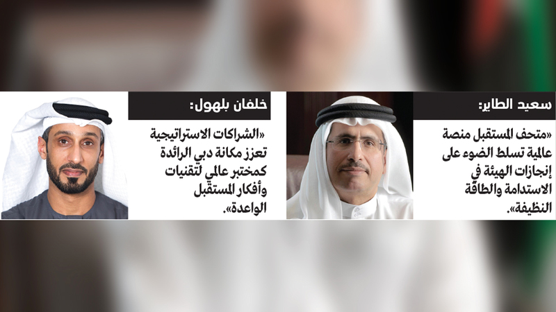 وقال العضو المنتدب الرئيس التنفيذي للهيئة، سعيد محمد الطاير، إن الهيئة كانت من السبّاقين في دعم متحف المستقبل، وأسهمت من خلال بناء محطة الطاقة الشمسية الكهروضوئية التي تغذي المتحف بالطاقة النظيفة، في جعله أول متحف في منطقة الشرق الأوسط يتقدم للحصول على الاعتماد البلاتيني للريادة في تصميم أنظمة الطاقة وحماية البيئة (لييد)، وهو أعلى تصنيف للمباني الخضراء في العالم.