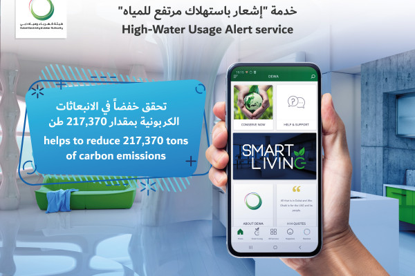 أعلنت هيئة كهرباء ومياه دبي عن تحقيق خدمتها "إشعار باستهلاك مرتفع للمياه" خفضاً في الانبعاثات الكربونية بمقدار 217,370 طن، منذ إطلاق الخدمة قبل ثلاث سنوات وحتى 30 يونيو 2022. وحققت الخدمة هذا الخفض من خلال نجاحها في تحديد 1,062,781 حالة تسرب للمياه، و 23,199 خلل، و11,566 حالة زيادة أحمال، وإرسال إشعارات آنية للمتعاملين، ليسارعوا إلى إصلاح التسريبات وإجراء أعمال الصيانة اللازمة لوقف الهدر.