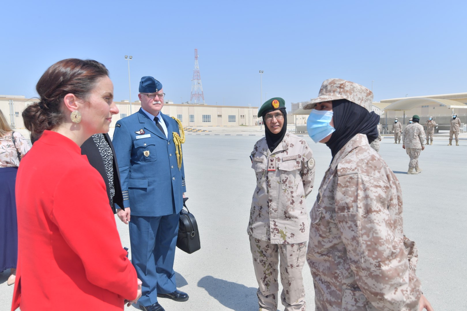 كان في استقبالها قائد مدرسة خولة بنت الأزور العسكرية العميد الركن عفراء سعيد الفلاسي و جرى بحث جهود دولة الإمارات لتمكين المرأة في المجال الدفاعي و دور المرأة الإماراتية في المجال الأمني و الدفاعي و المهام الإنسانية و مهام حفظ السلام.
