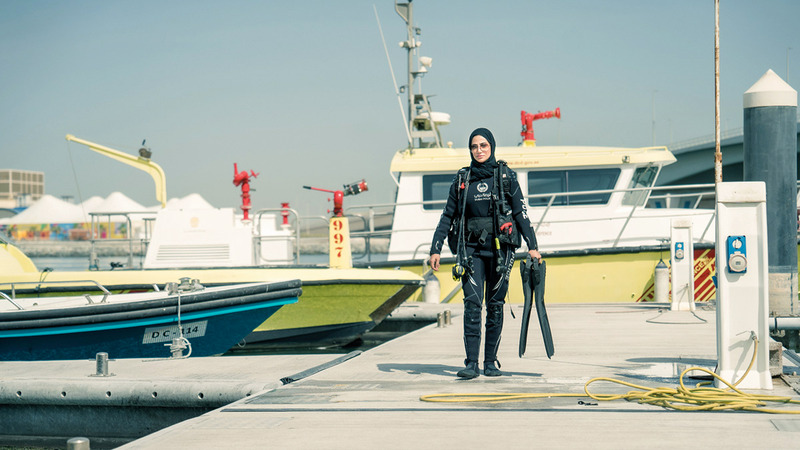 «خلود» أول امرأة في شرطة دبي تفتش عن المتفجرات تحت الماء