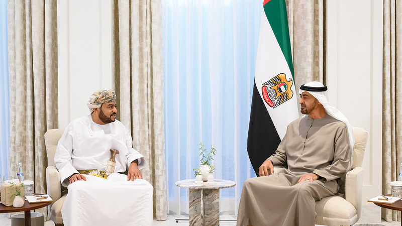 محمد بن زايد عبّر خلال اللقاء عن اعتزاز الإمارات بعلاقاتها مع شقيقتها سلطنة عُمان وتطلعها نحو مزيد من التطوّر.